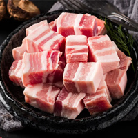 1取出500g帶皮五花肉洗凈切成3cm方塊,冷水下鍋焯水,煮開并保持2分鐘后撈出洗凈備用。
